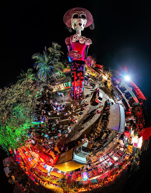 Como parte de los preparativos para el Festival Internacional de Día de Muertos Bahía de Banderas 2024, el presidente municipal, Hector Santana, junto a su esposa y presidenta del DIF municipal, Margui Zúñiga, develó y encendió una catrina monumental de 11 metros de altura. Esta icónica figura, instalada junto a las letras del Pueblo Mágico de Sayulita, será un distintivo del festival, que se celebrará del 31 de octubre al 2 de noviembre.