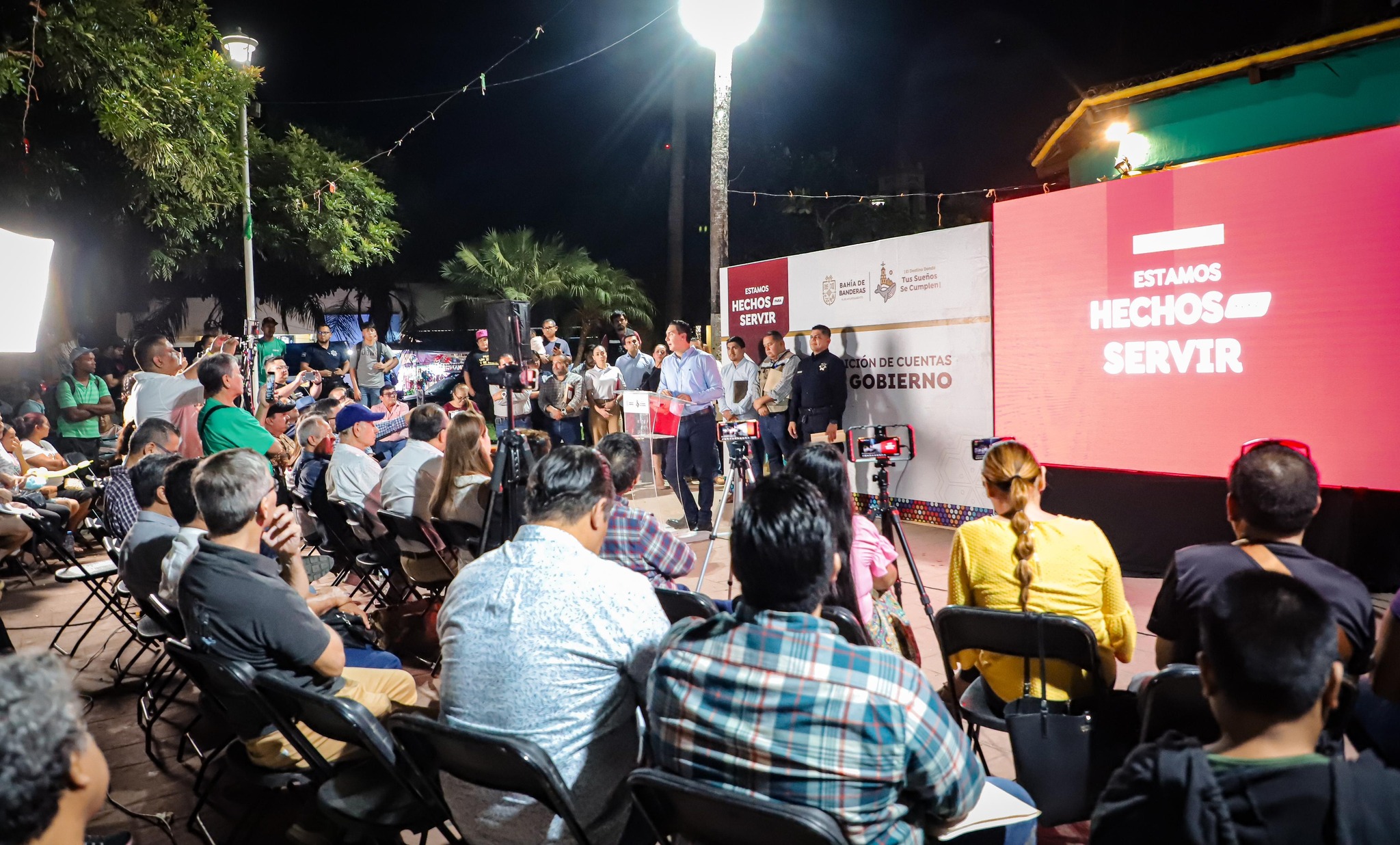 Durante su Rendición de Cuentas, el presidente municipal de Bahía de Banderas, Héctor Javier Santana García, anunció importantes avances para cerrar el año. Desde la localidad de San Vicente, informó que se iniciarán 21 nuevas obras antes de finalizar diciembre, con una inversión de 200 millones de pesos. De estas, 7 ya fueron licitadas, destacando entre los proyectos 3 domos escolares.