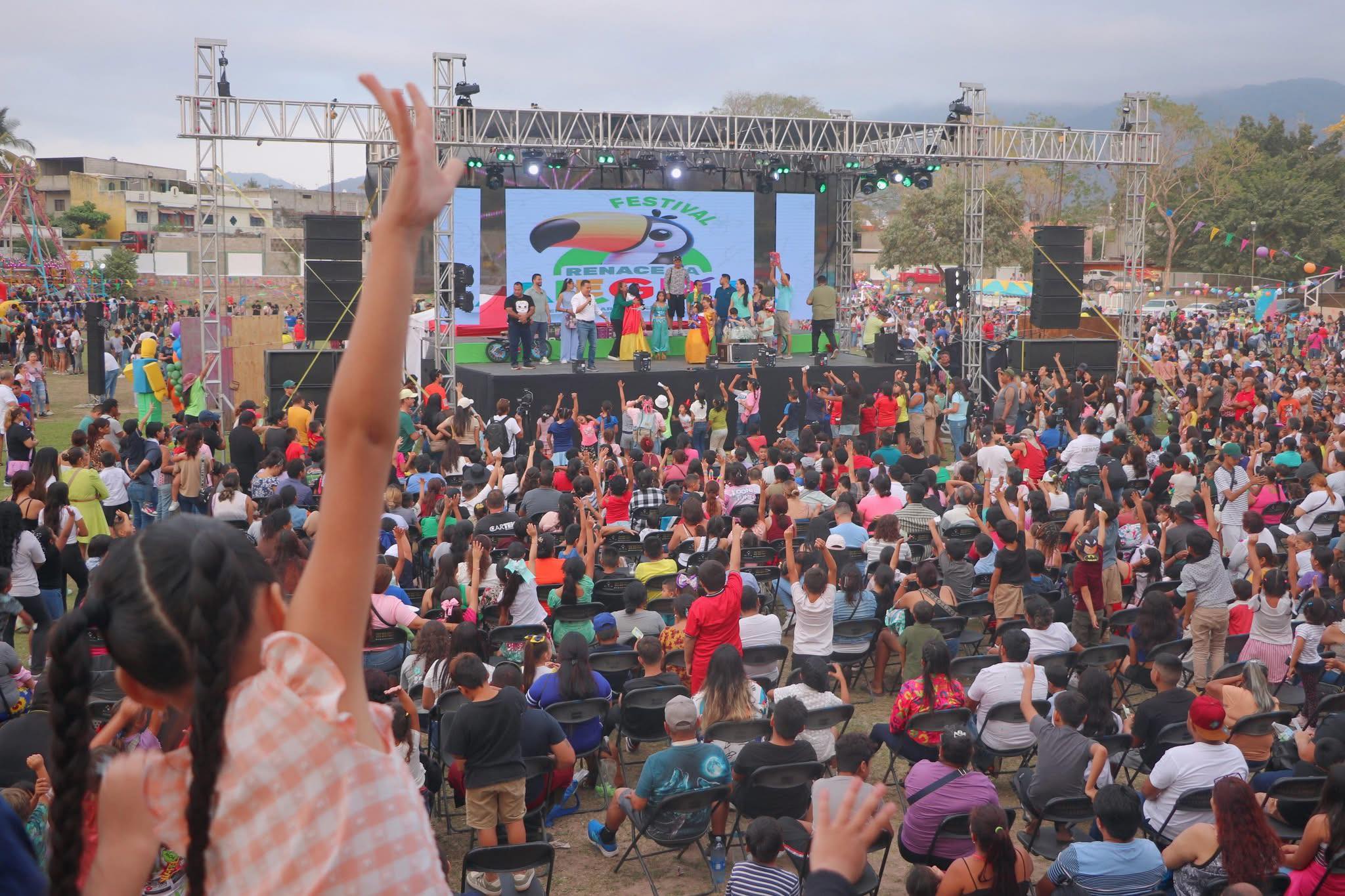 Sonrisas y diversión sin límites se hicieron presentes en el arranque del Festival «Renace la Alegría», organizado por el gobierno de Luis Munguía y que reunió a más de 6 mil personas, entre niños, niñas y padres de familia en la Unidad Deportiva Alfonso Díaz Santos en La Bobadilla.