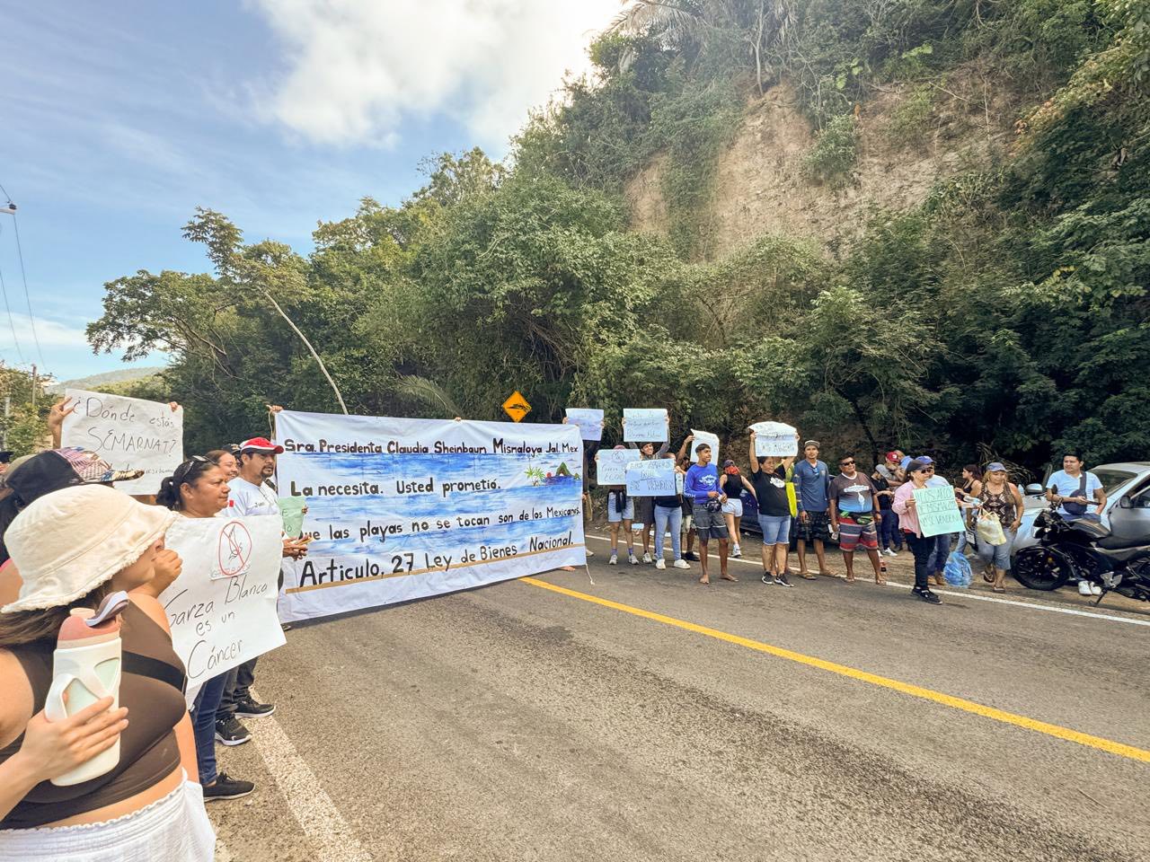 La protesta fue encabezada por habitantes de Mismaloya, prestadores de servicios turísticos y colectivos ambientalistas, quienes denunciaron un presunto intento de privatización del acceso a la playa, acción que —señalaron— contraviene el artículo 27 de la Constitución, el cual garantiza el carácter público de las playas en México.